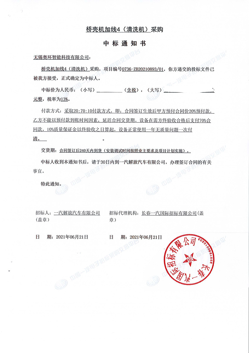日前,我司中標一汽解放汽車有限公司橋殼機加線4(清洗機)項目,該項目服務于一汽解放傳動事業部重型換代橋技術升級。